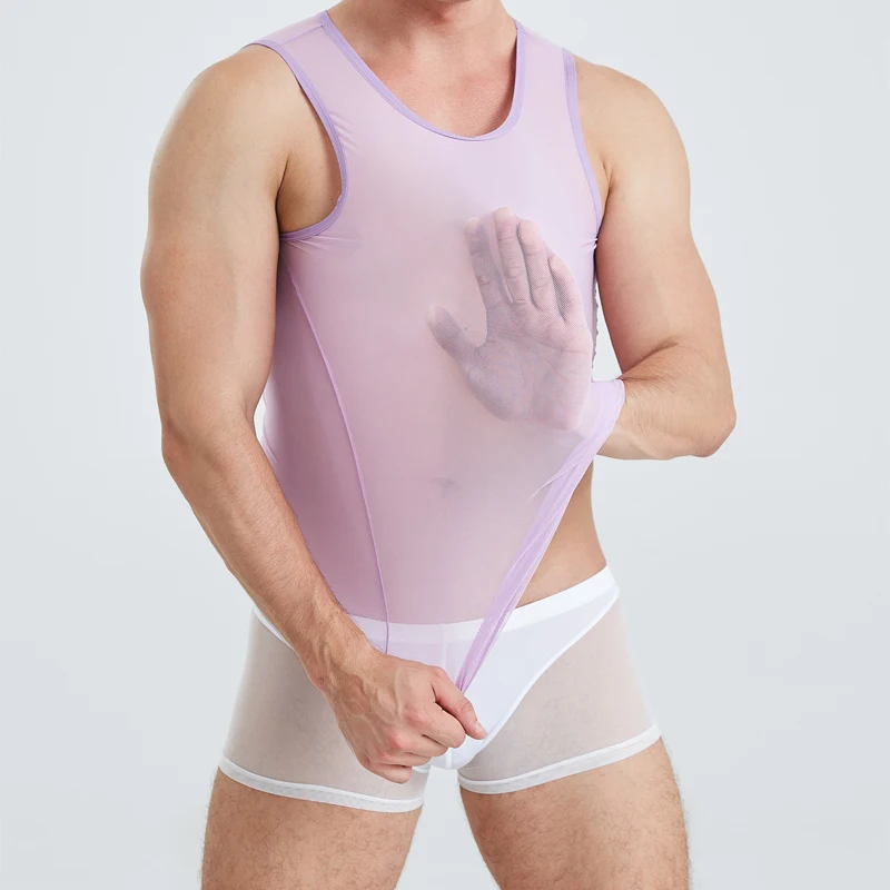 Sexy Men Tank Tops Transparent Mesh Sleepwear See Through Nightwear Sleeveless Tops Tees Sexy Underwear Male Black White Vest Tawaran Mana Mana Kedai Dalam Talian Global
